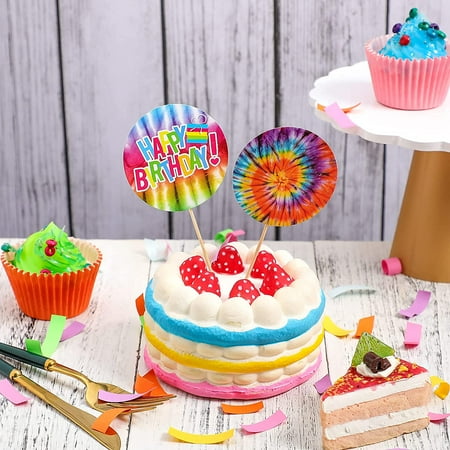 48 Pieces Tie Dye Cupcake Toppers Colorful Happy Birthday Cupcake Picks For Diy Tie Dye Party Retro 60s 70s Theme Hippie Carnival Baby Shower Rainbow Birthday Party Supplies Cake Decorations Walmart Canada